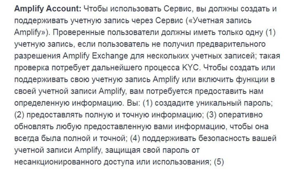 L’accord d’utilisation est le principal document régissant la relation entre l’administration du service et l’utilisateur. Avant de vous inscrire sur amplify.io, vous devez lire l’accord et en accepter les termes. Nous conseillons aux utilisateurs de ne pas ignorer cette étape, en cochant inconsidérément la case de lecture, mais de lire réellement le document avec attention.