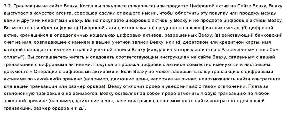 En vous inscrivant sur le site web, vous acceptez de fournir à l’administration du service les informations demandées pour la vérification de votre identité. Toutes les données fournies doivent être à jour et exactes. Pendant que vous travaillez sur le service, vous ne vendez ni n’achetez de crypto-monnaies sur Beaxy Exchange. La plateforme sert uniquement d’intermédiaire entre les utilisateurs pour faciliter les transactions. L’administration du service se réserve le droit d’annuler toute transaction pour un motif légitime.
