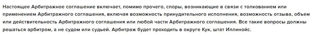Si des litiges surviennent, les parties doivent les résoudre dans le cadre d’une procédure préalable au procès. Le délai de règlement d’une demande est de 90 jours à compter de la réception de la demande. Si les parties ne parviennent pas à résoudre le litige au cours de la procédure préliminaire, celui-ci sera soumis au tribunal arbitral à l’adresse suivante où se trouve L’administration de l’échange de crypto-monnaies (Cook County, Illinois, États-Unis).
