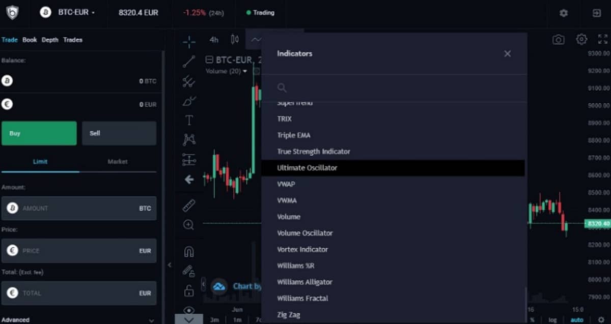 Une barre de recherche a été ajoutée pour plus de simplicité, car un total de 51 unités sont disponibles (formation en trading de crypto-monnaies). Choisissez le bon, cliquez dessus, et le système nous redirige vers l’échangeur. Il reste maintenant à spécifier l’action requise (Acheter – pour acheter cette cryptocurrency, Vendre – pour la vendre), à choisir la paire (dans laquelle la conversion a lieu) et à confirmer votre action avec le bouton ci-dessous. La commission est affichée dans la même fenêtre. De manière pratique, l’échangeur vous permet de voir un graphique des prix pour une période donnée (H – 1 heure, J – 1 jour, W – 1 semaine, M – 1 mois, Y – 1 an). Le trading de crypto-monnaies via le terminal est disponible en cliquant sur l’élément de menu Avancé. La plateforme est créée par Bitvavo, les analyses étant fournies par le célèbre fournisseur de solutions commerciales numériques TradingView. Caractéristiques principales :