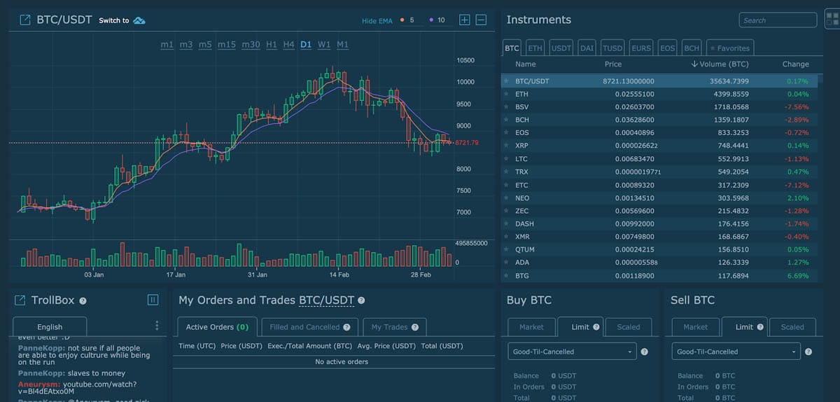 HitBTC, un échange particulièrement populaire auprès des traders européens, qui laissent des retours positifs sur leur travail avec lui. Pour le moment, le service ne fonctionne pas avec les utilisateurs russophones, ce qui n’empêche pas les commerçants de notre pays d’utiliser les larges possibilités du site. Dans l’Internet il ya encore peu de critiques des commerçants de travailler avec l’échange, ce qui est largement dû au fait que la ressource ne prend pas en charge la langue russe et le travail ici peut seulement les joueurs professionnels, ou connaissant la langue. Les utilisateurs plébiscitent le large éventail d’outils de trading, la sécurité du trading de crypto-monnaies, l’interface conviviale, etc. Comme points négatifs, on mentionne les problèmes de retrait, d’enregistrement, d’échange de pièces, etc. Il est important pour la société de ne fournir aux clients que des fonctionnalités fiables et des transactions sécurisées, pour lesquelles sont utilisées des méthodes modernes de cryptage des données, des portefeuilles froids, une authentification en deux étapes, une déconnexion automatique du compte utilisateur, un historique détaillé de l’activité du trader.