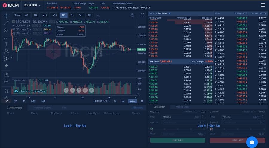 C’est aussi un avantage car, grâce à l’existence d’une alliance qui couvre plus de 60 pays, les activités des entreprises qui ont adhéré sont suivies de près. Toutes les organisations forment une barrière globale de protection juridique. Les sites non qualifiés ne peuvent pas rejoindre l’alliance. La plateforme de trading elle-même peut être trouvée en allant sur l’onglet « Trading » du site web. idcm.io. Le terminal dispose d’un ensemble de paramètres standard pour un trading confortable. Le client peut trouver des graphiques pratiques, un panneau d’information avec des informations de base sur la paire de trading, un tableau avec les dernières transactions, une pile d’ordres et un panneau d’ordres. Deux types d’ordres sont disponibles : les ordres au marché et les ordres à cours limité.