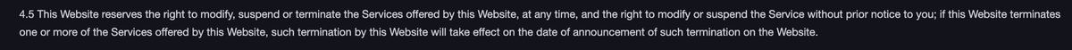 La société se réserve le droit de modifier, de suspendre ou d’interrompre les services proposés sur le site web à tout moment, sans préavis.