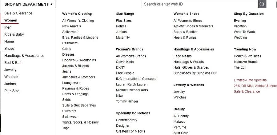 Dans la boutique en ligne de Macy’s, vous pouvez acheter des vêtements, des chaussures et des accessoires, des articles pour la maison, des meubles, des montres et bien plus encore. Le catalogue du magasin est conçu de manière à ce qu’il soit facile et pratique de trouver n’importe quel produit.