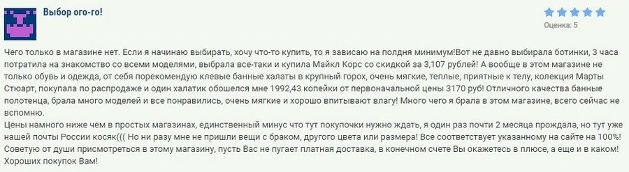 Vous pouvez trouver sur Internet de nombreux commentaires sur le service de la boutique en ligne. Les réactions sont majoritairement positives. Les acheteurs font l’éloge de la gamme de produits présentés dans le catalogue en ligne de l’entreprise et de l’application mobile conviviale. Beaucoup commentent la qualité des produits et les prix relativement bas.