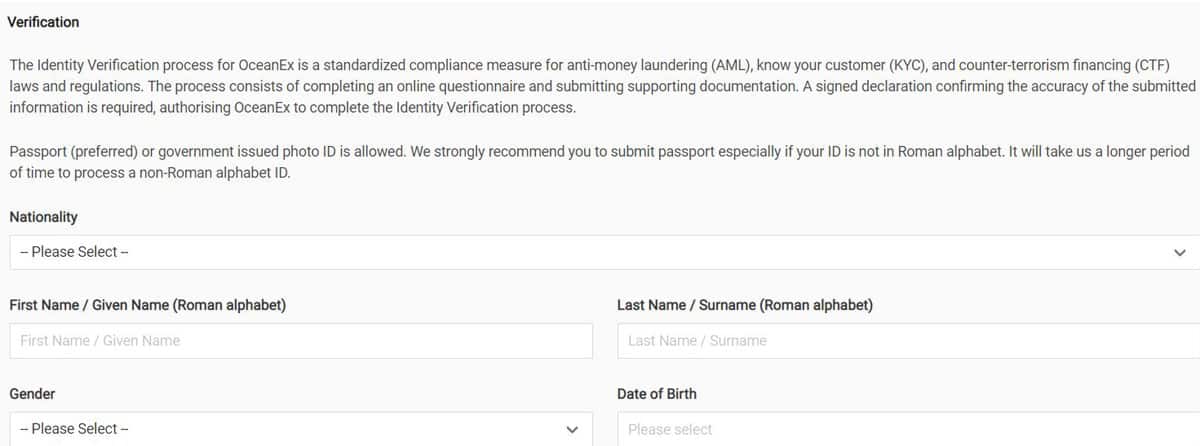 OceanEx invite les clients à remplir un formulaire de vérification étendu, avec une preuve de l’adresse du domicile :