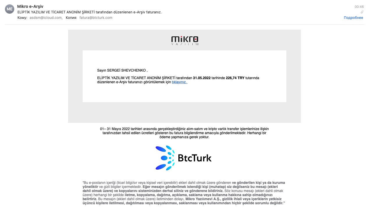 J’écris au support technique de Garantex, ils répondent rapidement, que tout s’est déroulé sans aucune erreur, ok j’écris au support technique de BTC Turk, le manager me répond que ma transaction est suspecte et qu’elle a été envoyée à l’adresse suivante Le service spécial sera contacté et vous recevrez une réponse par courriel.