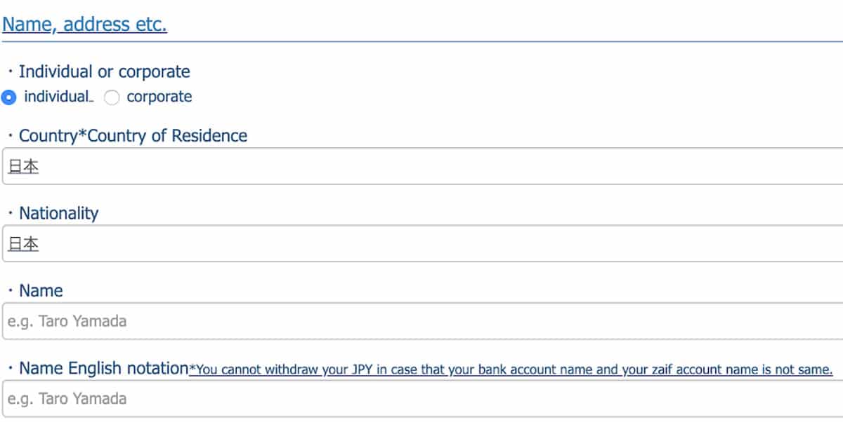La vérification est un processus obligatoire sur l’échange et consiste en plusieurs étapes. Tout d’abord, le client doit s’inscrire et confirmer son adresse électronique. L’étape suivante consiste à remplir des informations personnelles :